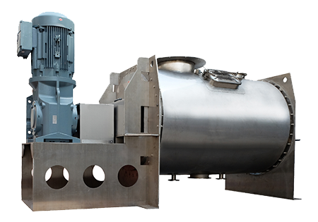 由傳動機械,臥式筒體,犁刀和飛刀組等四部份組成。旋轉的飛刀強烈拋散,在犁刀和飛刀的復合作用下,從而在極短的時間內達到均勻的混合。